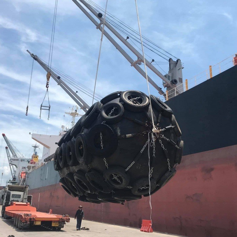 O para-choque de acoplamento pneumático é feito das camadas reforçadas do cabo de elasticidade e de flexibilidade altas, que o permitem do fazer dar forma a conformant na compressão inclinado durante operações do navio-à-navio. Comparado com o para-choque contínuo e o para-choque da espuma, o para-choque de acoplamento pneumático é mais fácil distribuir a carga ao longo do corpo ou da estrutura ancorando do navio.